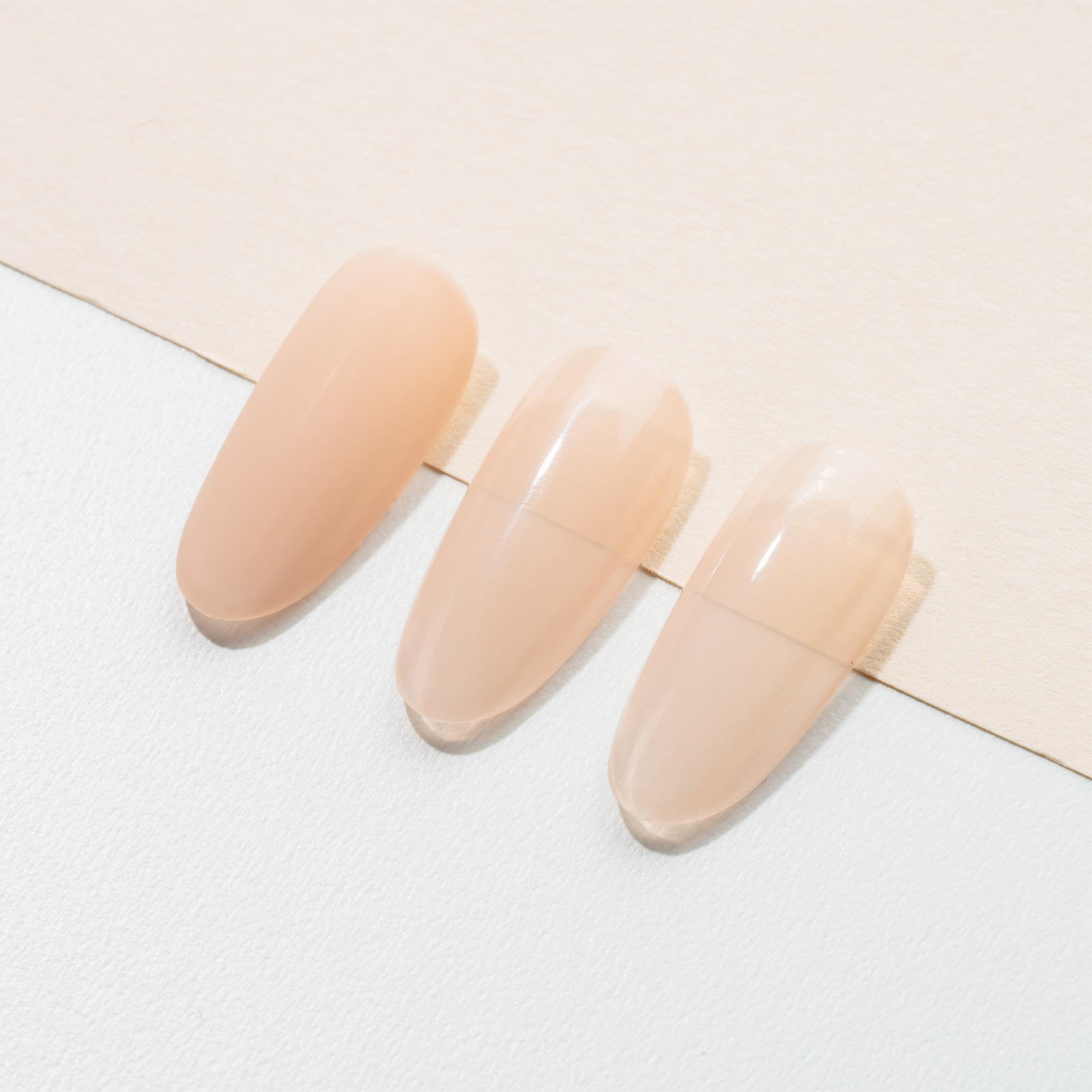 Bereite den Naturnagel vor und trage eine Schicht Base Coat auf. Danach eine dünne Schicht Light & Shadow Sheer Gel Couleur auftragen und 30 Sekunden unter LED aushärten. Für mehr Deckkraft eine zweite Schicht auftragen und erneut härten. Anschließend mit dem Après Non-Wipe Top Gelcoat versiegeln. Bei Anwendung auf Gel-X Tips ist kein Base Coat nötig.