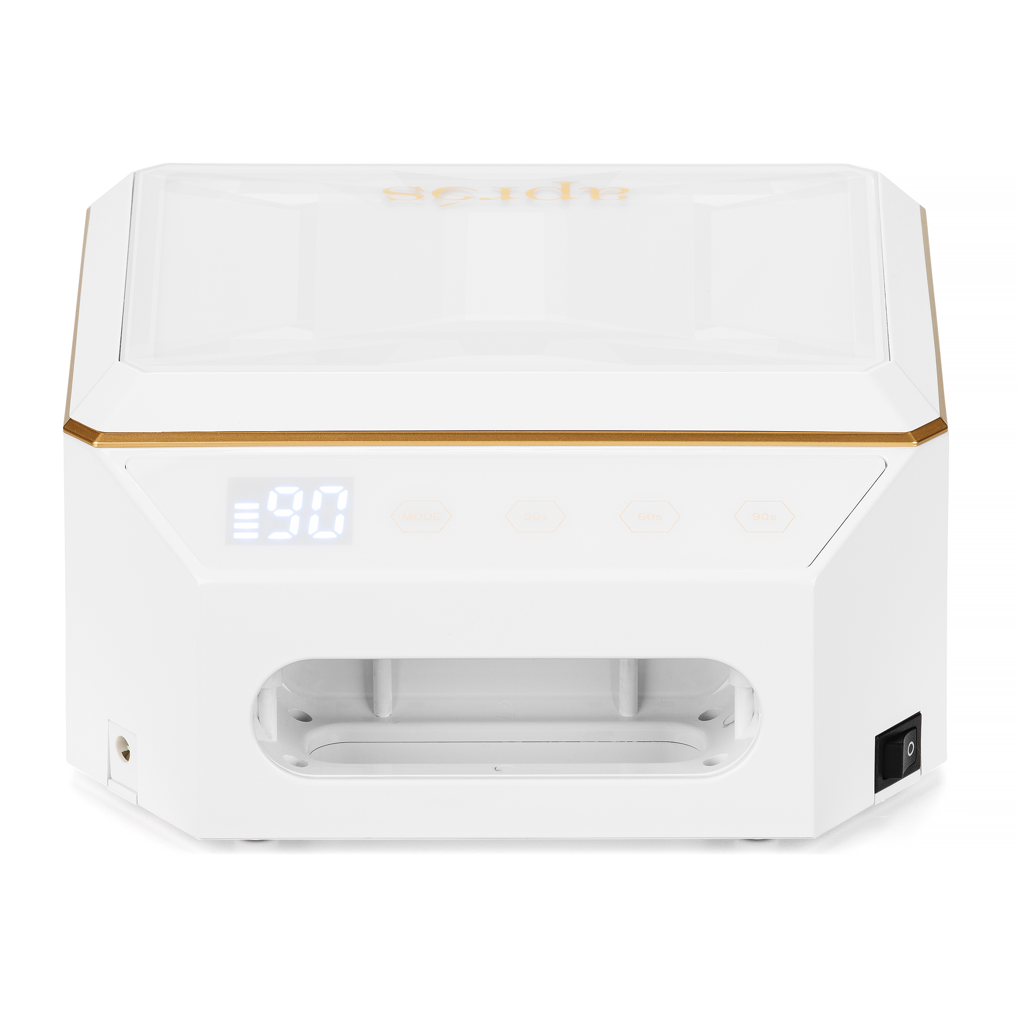 - ROSA: Kombinieren Sie blaues und rotes LED-Licht, um die UV-/LED-Strahlung auf der Haut zu reduzieren. Nur die Nagelspitzen werden dem blauen LED-Licht ausgesetzt, während der Rest der Hand dem roten LED-Licht ausgesetzt ist. Härtet das Gel genauso stark und effizient aus wie blaues LED-Licht.