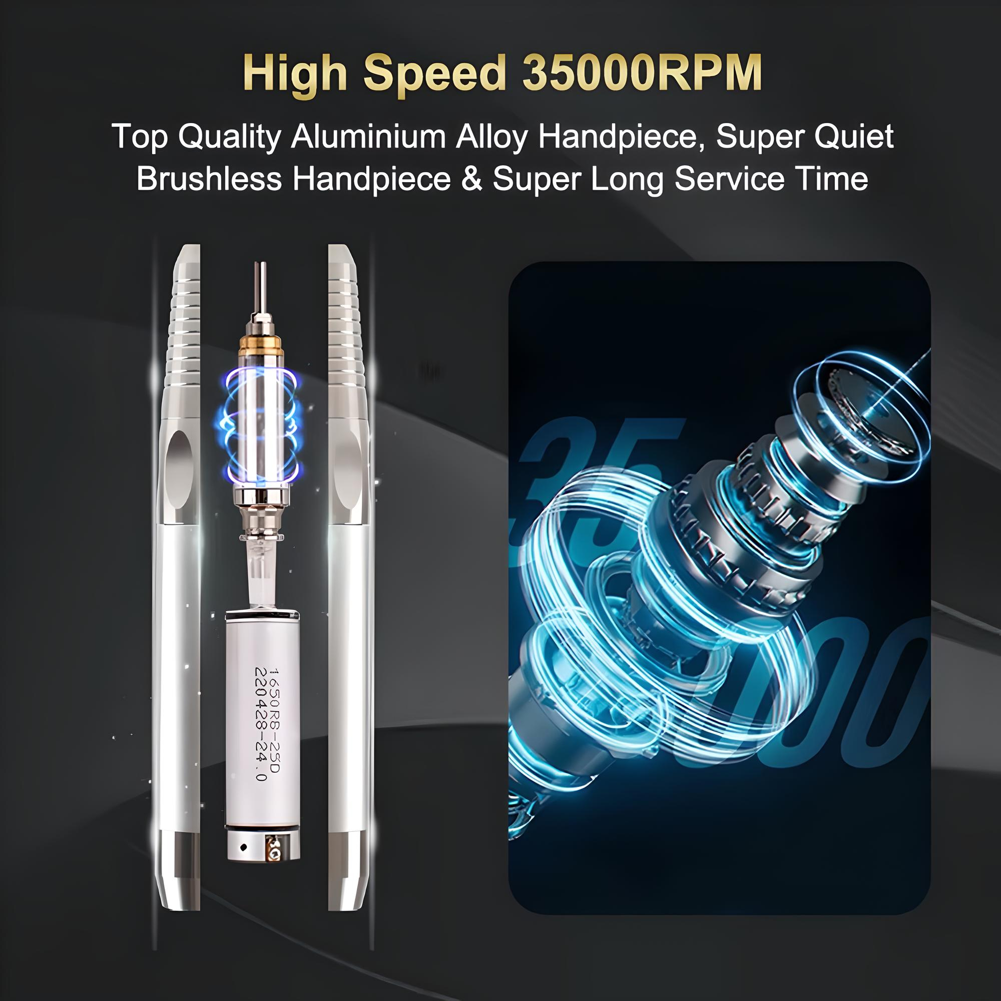 Professionelle 85-W-Fräsermaschine für Maniküre und Pediküre, mit stufenloser Drehzahlregulierung bis zu 35.000 Umdrehungen pro Minute.