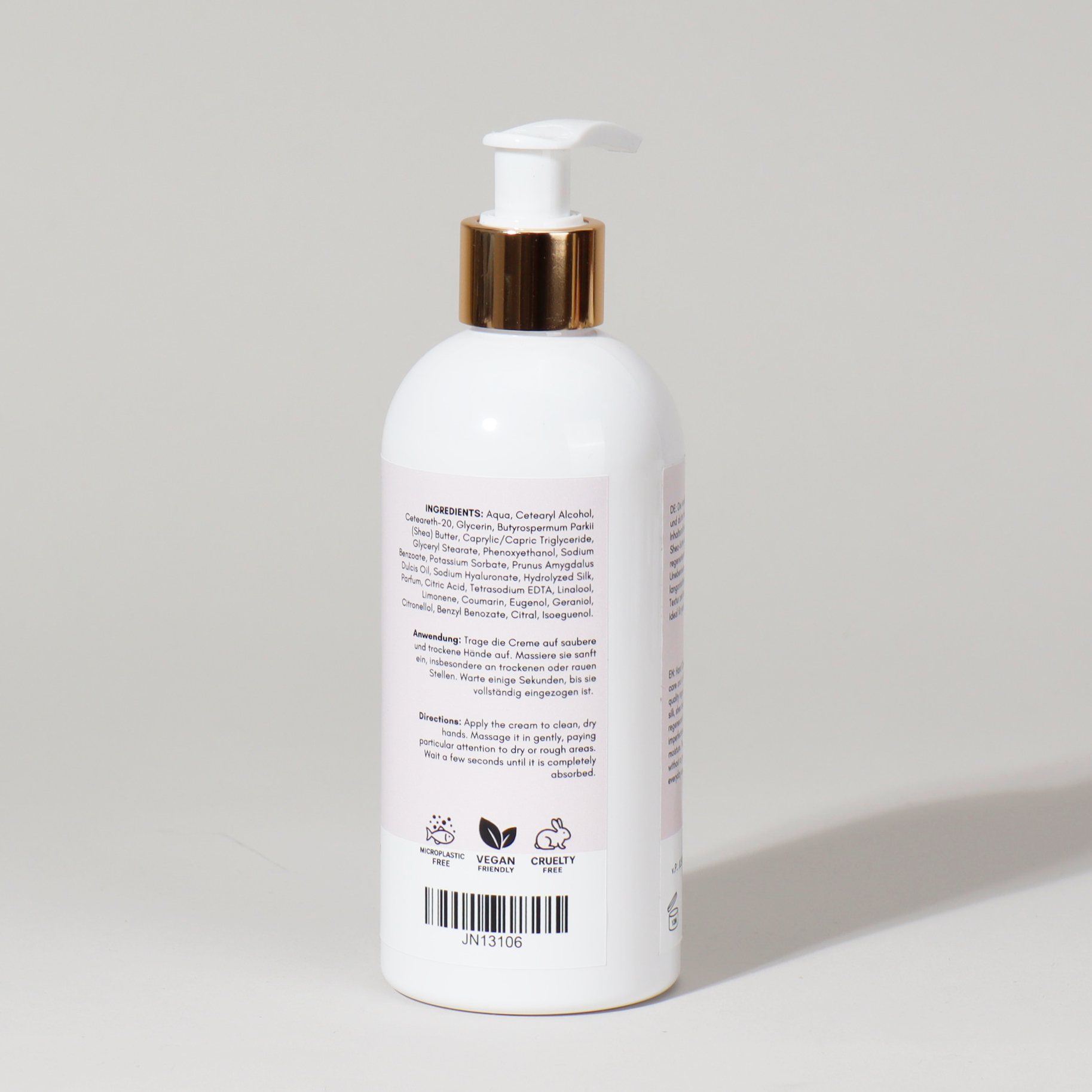 Eine kleine Menge auf die Hände geben und sanft einmassieren. Ideal nach dem Händewaschen oder bei trockener Haut. Für beste Ergebnisse regelmäßig anwenden.