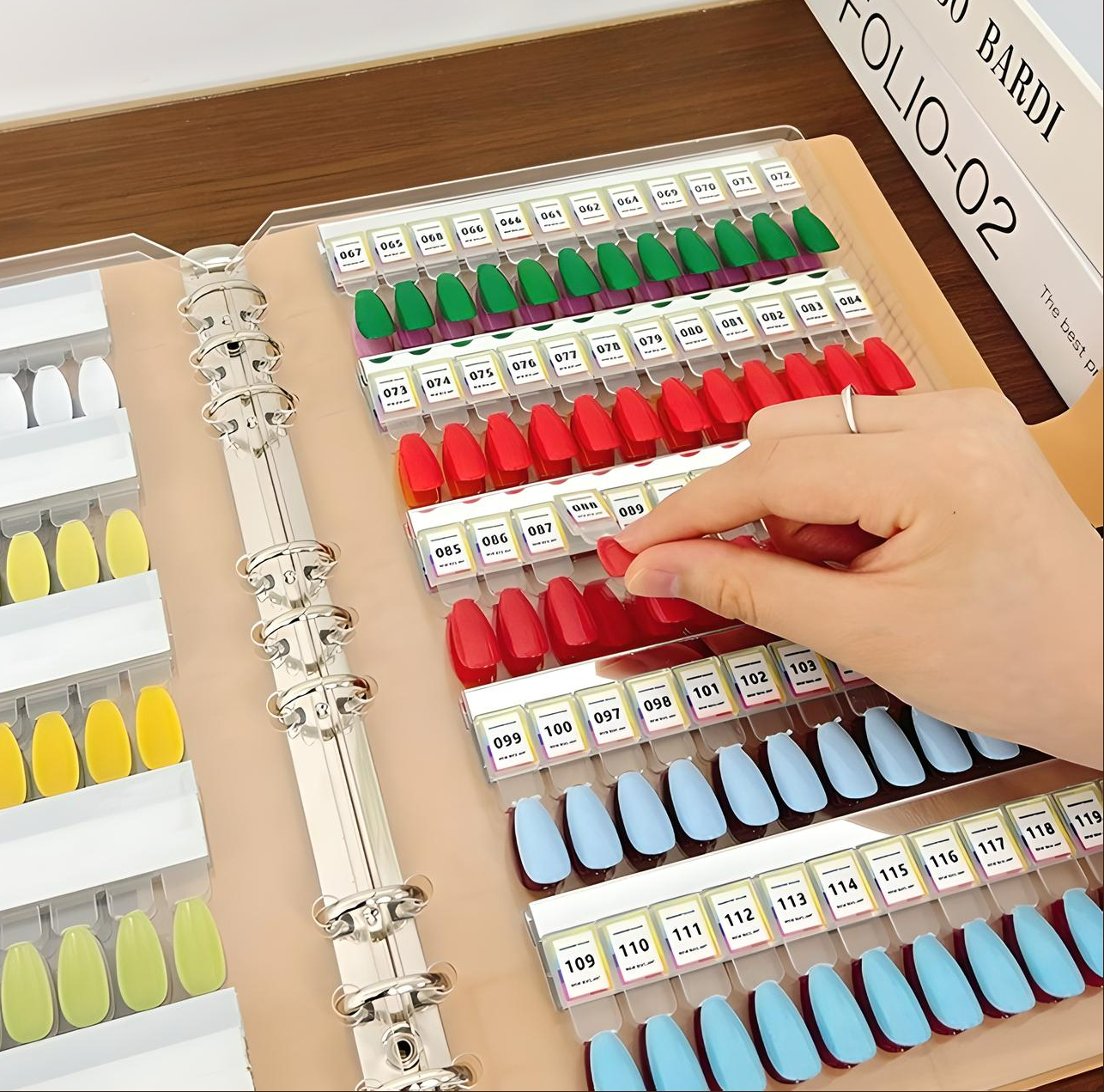Die einzelnen Tips lassen sich mühelos abnehmen und direkt an den Nagel halten, um die passende Farbe im Handumdrehen zu finden – ideal für Studios und Kundinnen, die schnell und präzise vergleichen möchten.