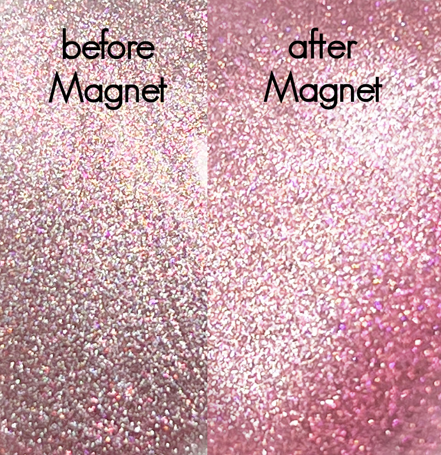 Lassen Sie das Gel sofort danach aushärten (UV/LED: 60 Sec.) und Versiegeln es zum Schluss. Sie können auch ohne Magnet einen wunderschönen Effekt erzielen indem Sie das Gel einfach nur auf eine schwarze oder beliebige andere Untergrundfarbe streichen und einfach aushärten. Für den idealen Schutz empfehlen wir unseren Secret Beyond Shine zum versiegeln..